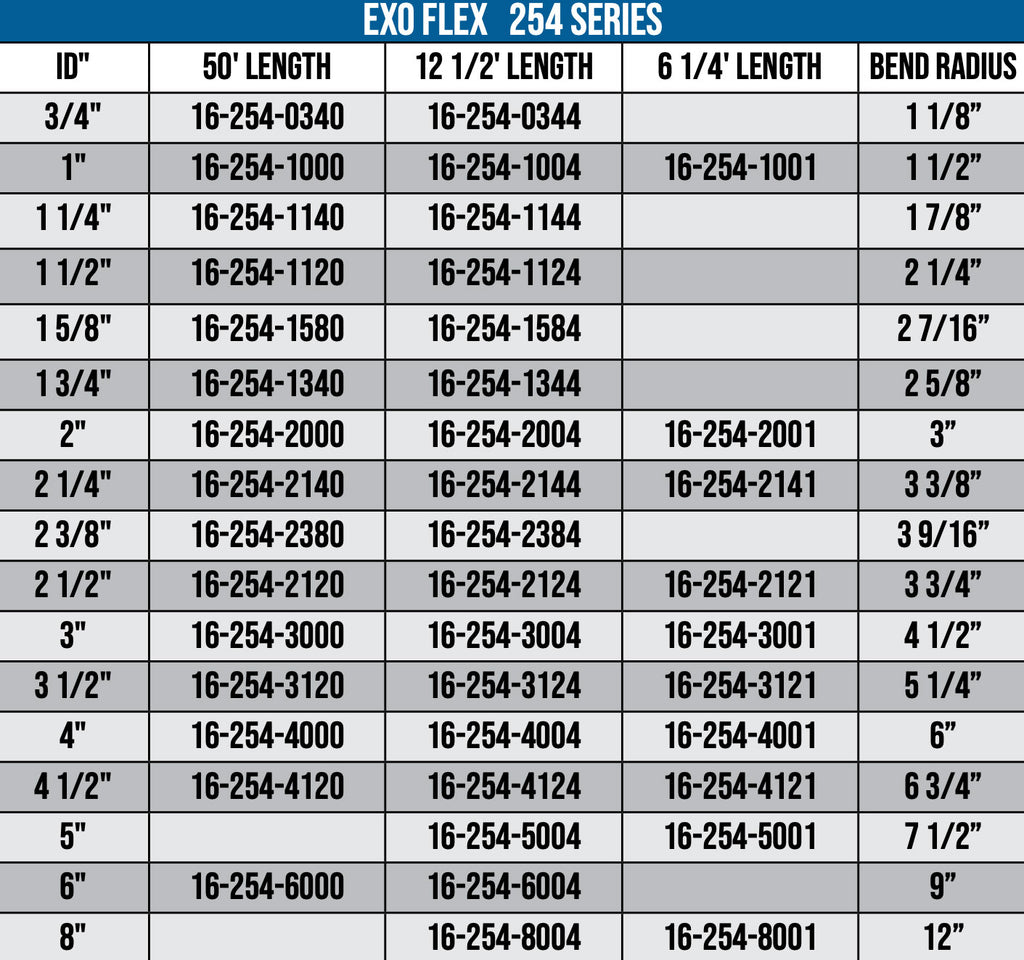 - NOTE: Hoses over 3" ID may have shipping length restrictions (generally 7 feet) since they cannot coil