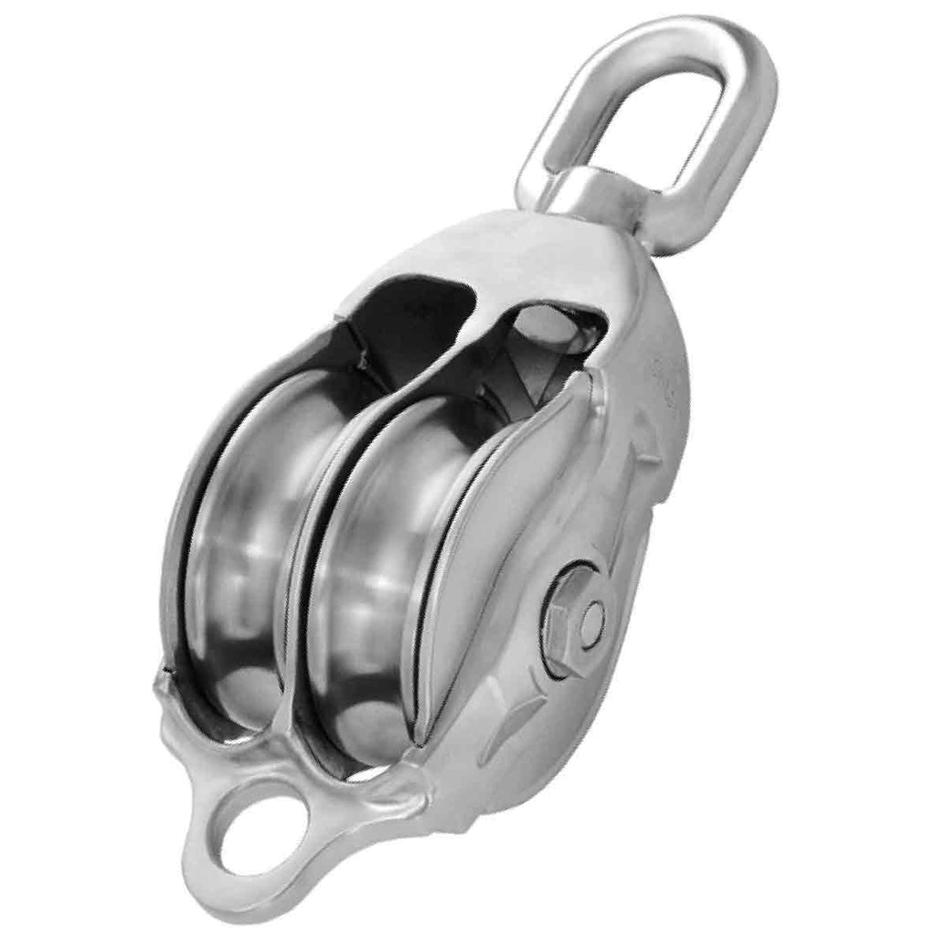 Material: Special stainless steel, Sheave: SCS13 (equivalent to SUS304), Swivel/side plate/sheave pin/set screw with a hexagon hole: SUS304, Oil impregnated bushing: bronze
