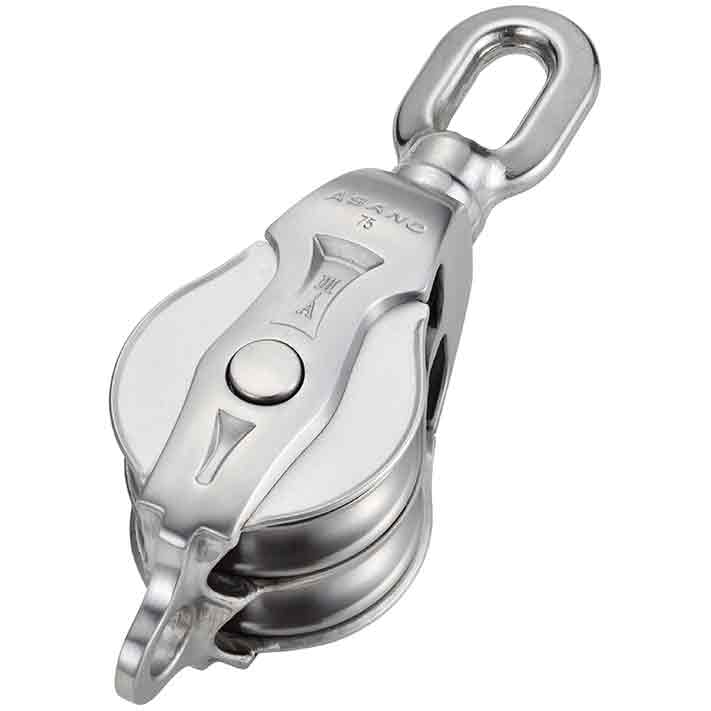 In addition to the snatch type, AK Block Type III-A comes in an eye type and a hook type. It also comes in single sheave and double sheave models. The different types also come in a variety of sizes. This product offers the most variations, including in prices, in the ASANO block category. This product is ideal for when you are introducing stainless steel blocks into your business for the first time. You will be able to enjoy the special characteristics only a stainless steel product manufacturer can offer, such as functional details and materials that are most effective for use at sea.