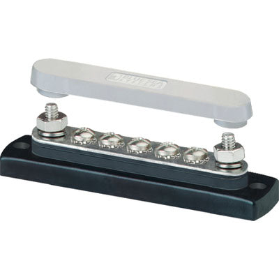 Blue Sea Systems, MiniBus 100 Amps, 5X 8-32 Screw Terminal with cover, 100A Common BusBars. Provides convenient busing for limited space applications.