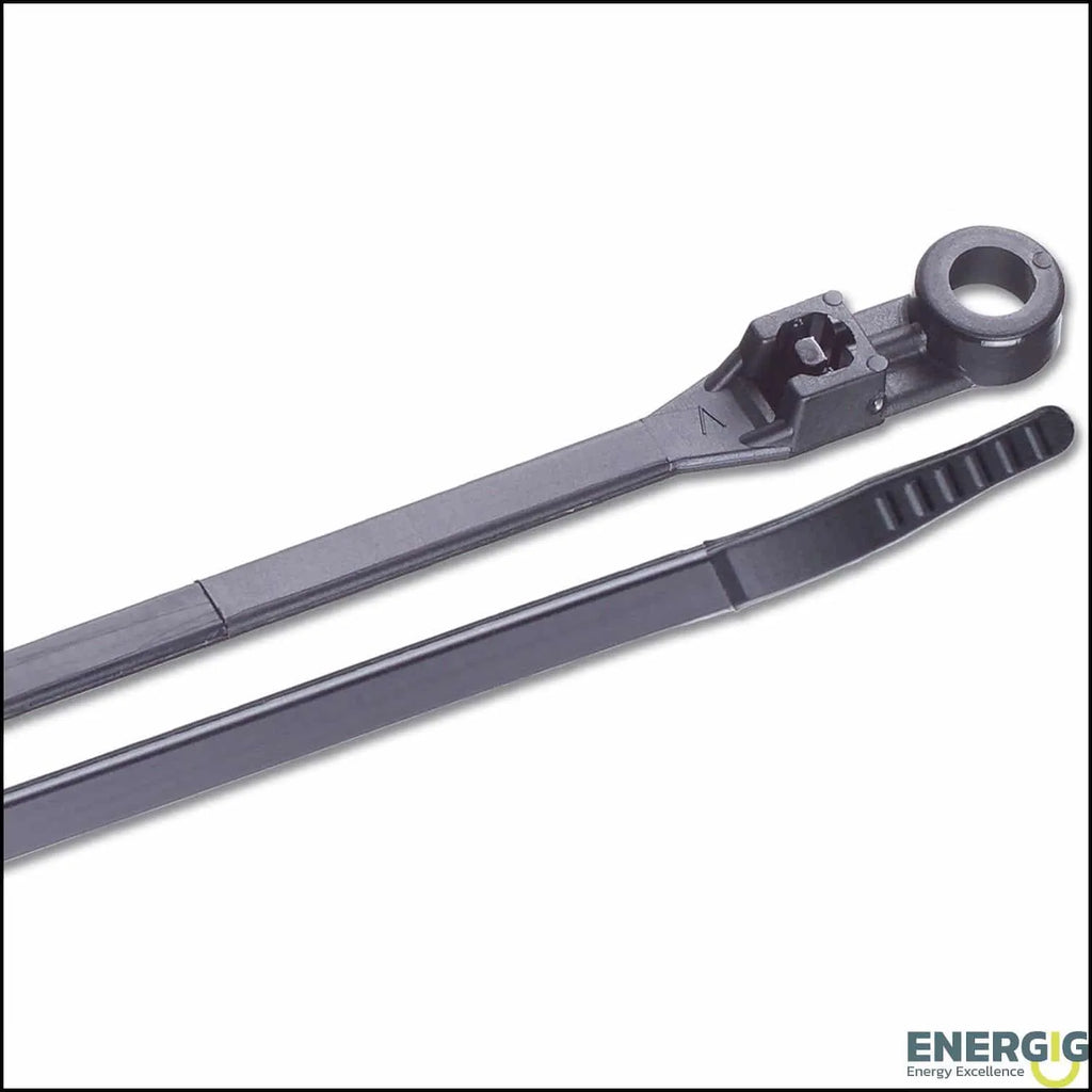 Standard self-cutting cable ties simply lock and twist. No additional tools are required. Integrated stainless steel blade leaves a clean fresh cut. Tensile strength up to 50 pounds.