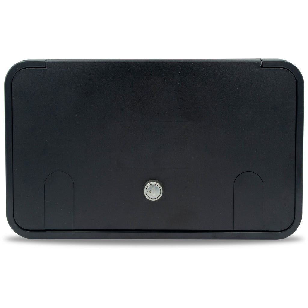 Lock is "Key alike ready" to match your entry door or other compartment locks. Dual vermin doors accept both 30 and 50 amp cord. Includes installation kit. Made in the USA. Size: 7-3/4" H x 12-5/8" W. Cutout: 6" H x 11-1/16" W.