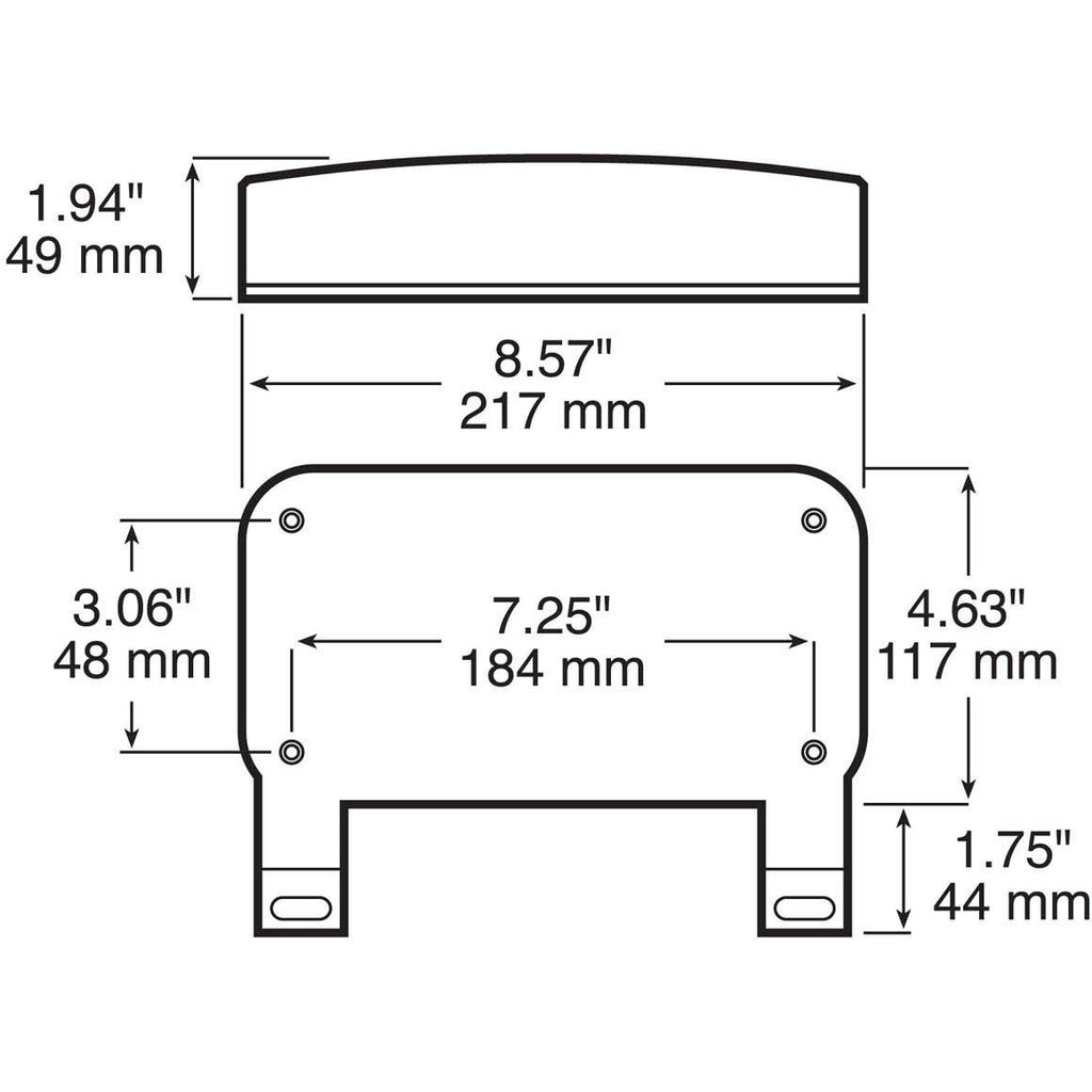 DOT compliant. Popular for RV applications. Not for marine use. Integral Reflex Surface mount rear combination incandescent tail light. Surface mounts on 7.25" centers. 8.6"W x 4.6" H x2" D.