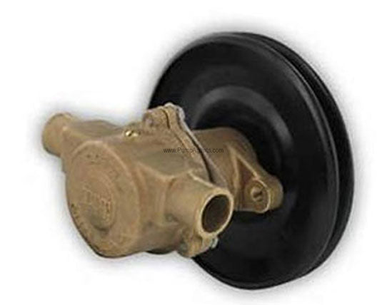 Pump has a nominal flow rate of 8.9 gallons/min (40 Litres/min) at 1500rpm and is self-priming from dry up to 2.4m (7.8ft). Pump will produce suction lift of up to 22 feet (6.7m) when wet. Be sure suction lines are airtight or pump will not self-prime. This pump is designed for liquids between 45 degrees and 180 degrees F. Pumping colder water will shorten impeller life. The pump may be mounted in any position. The direction of rotation of the pump determines the location of the intake and discharge ports. Before installing, rotate the pump shaft in the direction of normal operating rotation. The mounting bracket used to support the pump must be designed to enable adjustment of the pump position for proper drive belt tension. 6-1/2 Inch A belt pulley.