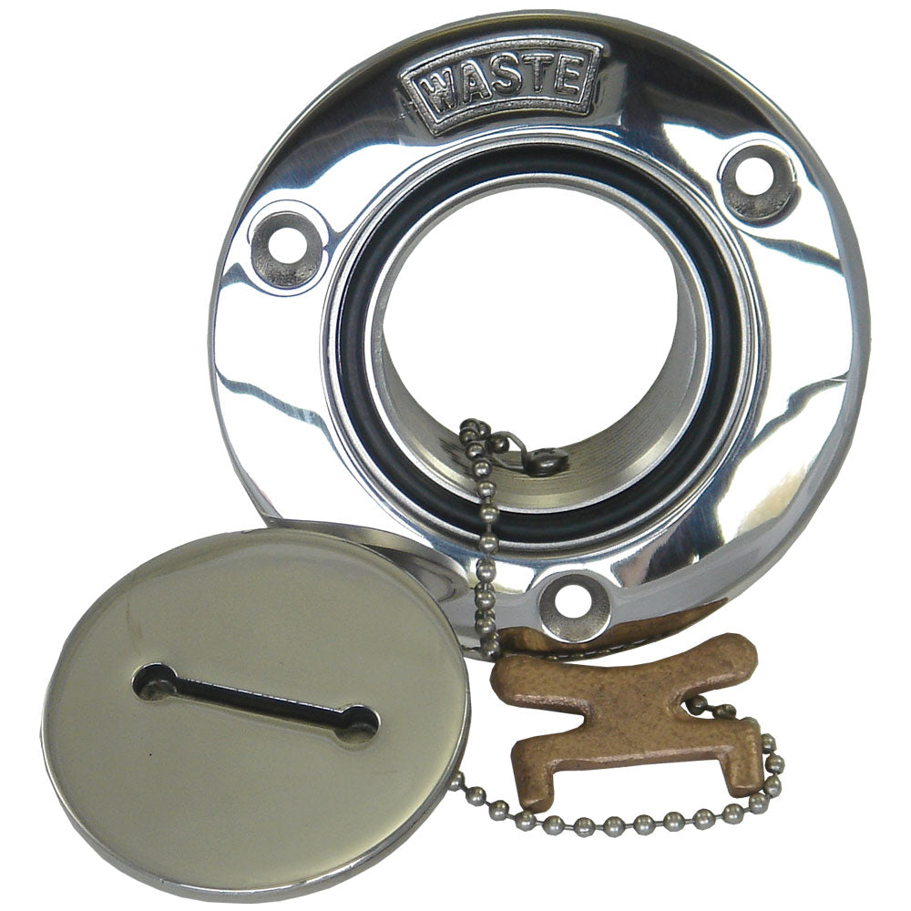 Buck Algonquin Bronze and Stainless Steel Pipe Deck Plates for your boat are functional and long lasting. Buck Algonquin pipe deck plates are furnished with a beaded chain, cap, O-ring and key.
