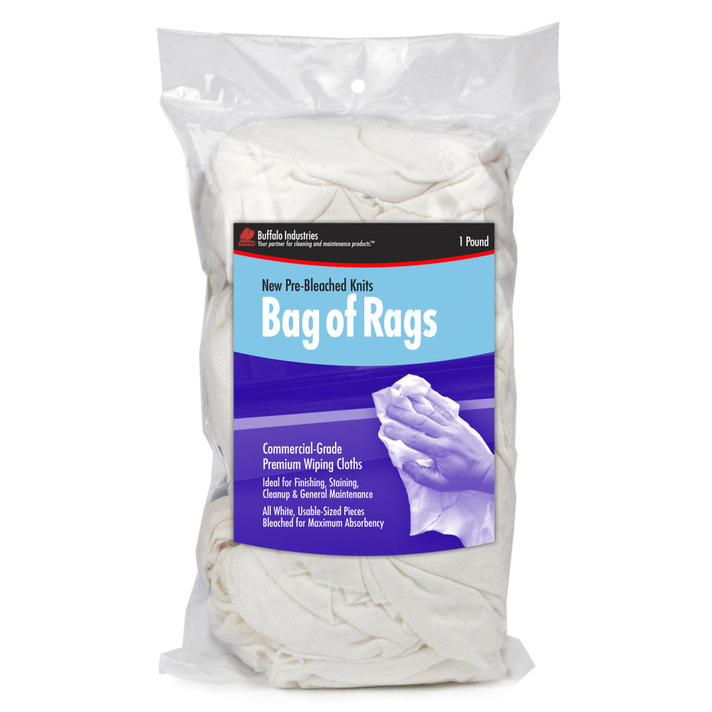Buffalo Industries, New Whte Knit Wiping Cloths, Bag, 1lb.