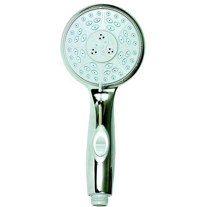 Enjoy longer showers with these ergonomically designed, handheld showerheads. Convenient on/off switch allows you to pause the flow of water while shampooing, greatly reducing the amount of water used. No more rushing through your shower to conseRVe water. Multi-featured showerhead allows you a choice of four spray patterns. From a drenching rain to a gentle massage, you can personalize your shower with your favorite comfort settings. Heavy-duty for years of use. Produces 2.5gpm with 40psi at the water source and 1.7gpm with 25psi at the water source.