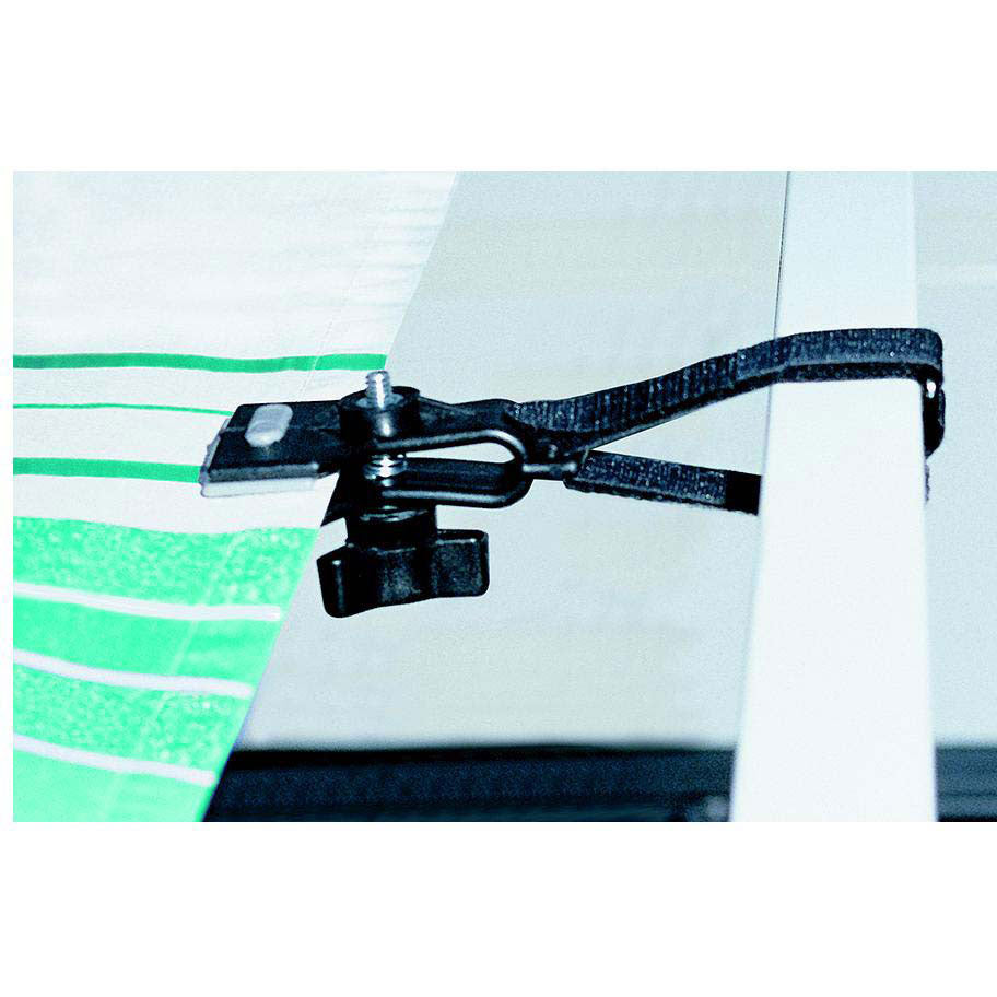 Protect your valuable RV awning from costly rips and tears while preventing noisy wind flapping. De-Flapper holds securely with hook-and loop fastener straps. Made of durable nylon with UV stabilizers, chemically resistant and rust proof. Universal fit. Soft, non-marring grippers protect awning fabric. Can be used with screen room in place. Patented.