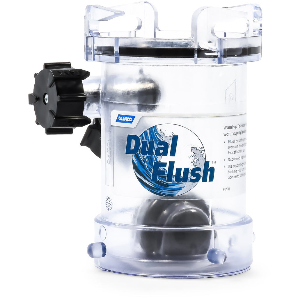 Flush out smelly waste tanks and sewer hoses with Camco's Dual Flush! This unique rinser for RV black water hoses and RV black tank flushing is designed to provide two-way jet cleaning action to reduce odors and keep your septic system running in tip-top shape. This transparent 5" long polycarbonate fitting easily attaches between your sewer hose and dump station connection and works with any standard water hose to create a powerful spray. Plus, the Dual Flush features a patented design, so you can rest easy knowing that you have an incredible product. With its unbeatable performance, exceptional features, and durable construction, this item is an RV must-have for your septic system. Don't forget to use a vacuum breaker (Camco# 40395) with the Dual Flush to avoid freshwater contamination!