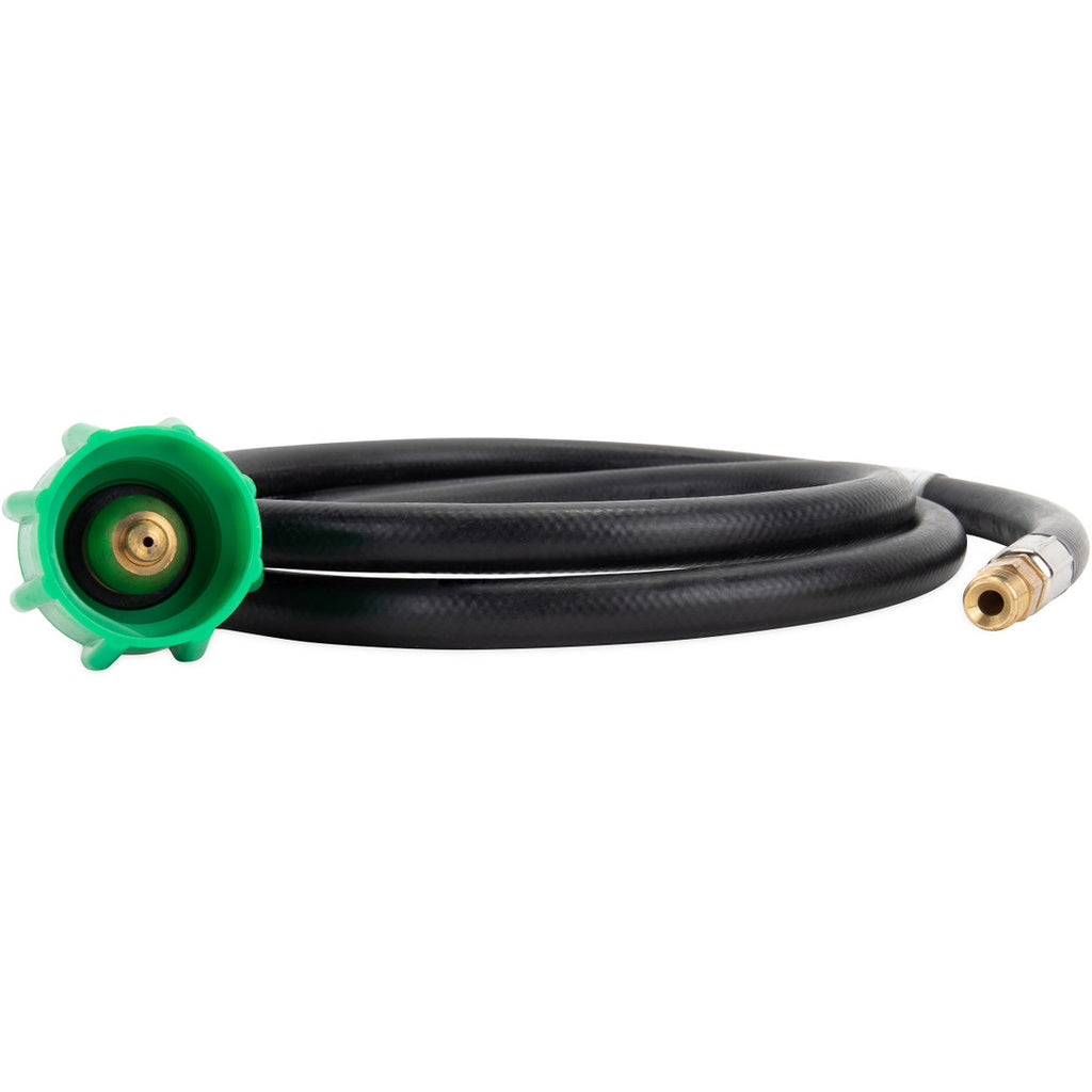Camco's 60" Pigtail Propane Hose Connector is designed to connect a propane cylinder to an RV or trailer propane regulator. It has a ACME nut x 1/4" inverted male flare. It is rated for 200,000 BTUs per hour. Safety features include thermal protection in case of fire and excess flow protection in case of broken gas line. You can use the pigtail hose with a 20 lb or 30 lb refillable propane tank and connect it to a regulator or 4-Port Brass Tee. It can also be used to connect to an installed 4-Port Tee as an auxiliary propane supply.