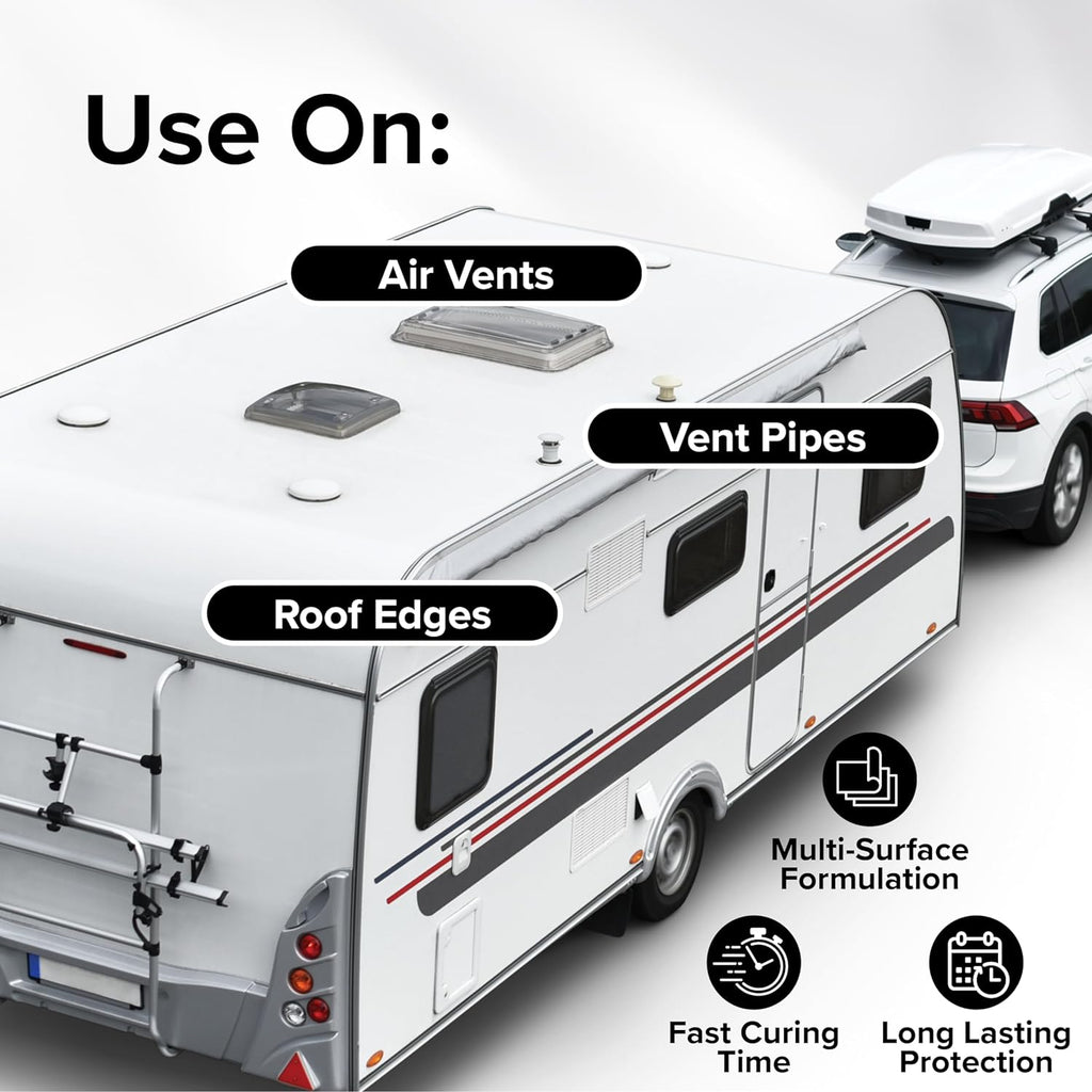 - Creates a Strong Seal Along RV Roof Edges, Vent Pipe and Air Vents