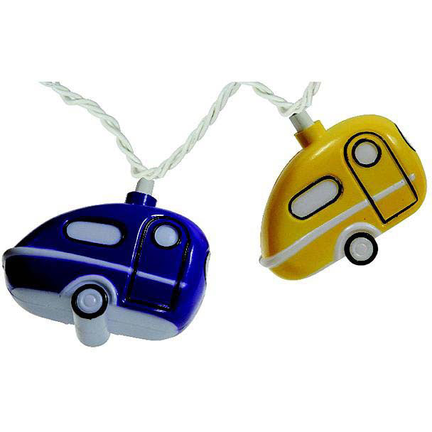 Camco's Life is Better at the Campsite Retro Travel Trailer LED Party Lights provide a festive atmosphere that is perfect for RV enthusiasts. Features an 8-foot strand with (10) retro travel trailer LED lights and an end connector for hooking strands together. The 120V/2.4W party lights are UL certified for indoor and outdoor use.