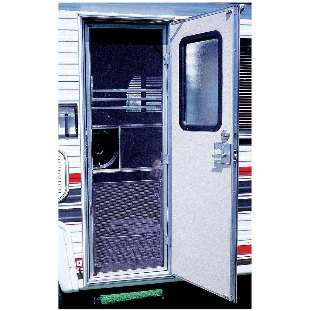 Camco's Standard Screen Door Protective Grill is make of lite weight Aluminum and adjusts to doors 20" to 29" wide. Protective door grills allow for easier exit and adds protection to your RV screen door.