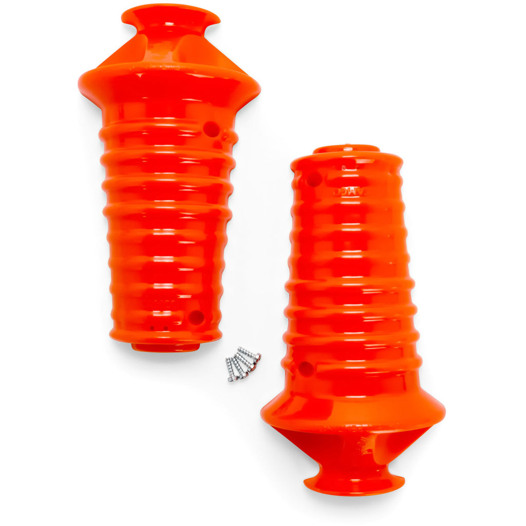 Camco Toilet Flush Valve Prop easily installs around the body of your RV Waste Tank Rinser and props open the toilet waste valve while you clean. Using a Flush Valve Prop makes it easier to clean the waste tank without having to hold down on a foot pedal, and also helps prevent damage to the waste valve. The tapered design helps prevent splash back, and the ridges helps keep the prop in place. The Valve Prop fits all tank rinsers and is easy to install with all hardware included.