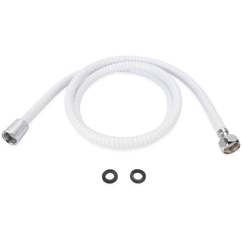 Camco's 60" Flexible Replacement White Shower Hose has built-in connectors for easy installation to a standard 1/2" shower arm. Its reinforced construction eliminates hose kinking. This hose includes washers.