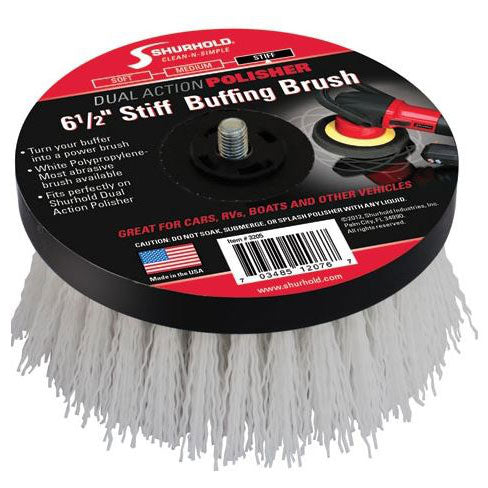 Shurhold DAP Stiff Buffing Scrub Brush turns your buffer/polisher into a power brush and aggressive boat scrubber. The stiff white bristles work on teak and heavily stained areas.