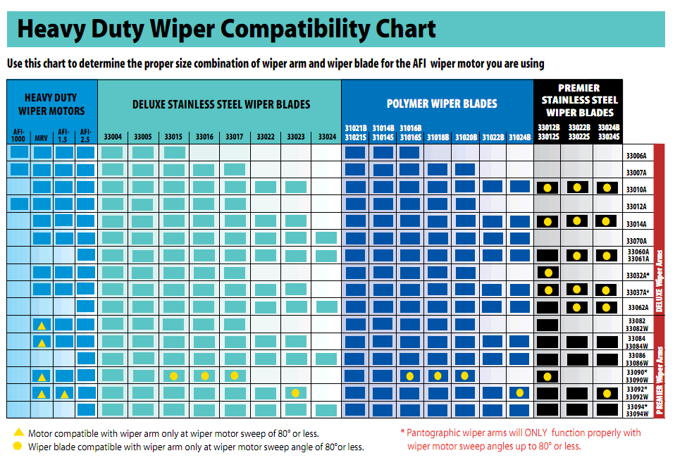 - Pantographic wiper arms will only function properly with wiper motor sweep angle of 80 Deg. or less