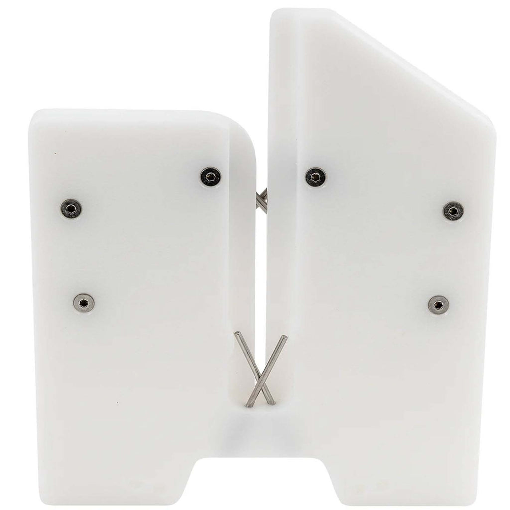 The Dexter DMS2200 07750 pull through sharpener is designed to realign the feathers, or microscopic metal fibers, on the edge of the blade. Over time, these feathers become rolled over, creating a dull edge. This tool restores the original shape of the feathers by pulling the knife's blade through the honing tool. The Dexter DMS2200 07750 pull through sharpener is designed to be used in production lines, mostly in poultry plants.