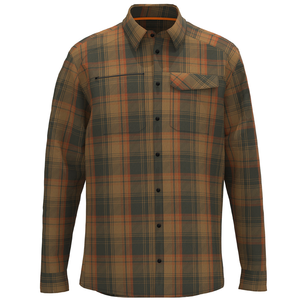 The Dispatch Flannel shirt offers optimal warmth and performance with a natural cotton rich hand. A hidden zippered chest pocket allows the user to store small valuables (leader, tippet, credit cards, cash, etc.) securely and snap buttons bring an elevated feel to this piece. The perfect flannel for the avid angler and fisherman.