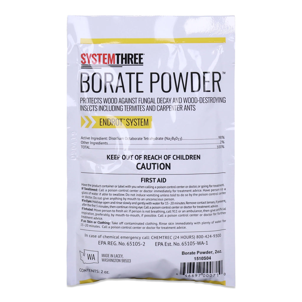 EndRot Borate Powder is a water-soluble white powder. It can be used dry or in solution to form an effective penetrating solution. There are no hazardous solvents and no odors. The active ingredient in EndRot Borate Powder, Disodium Octaborate Tetrahydrate, is a borate derivative that will not break down over time. Borates have been used as a safe and effective pest control for over 40 years and is a part of the System Three EndRot System for wood rot repair.