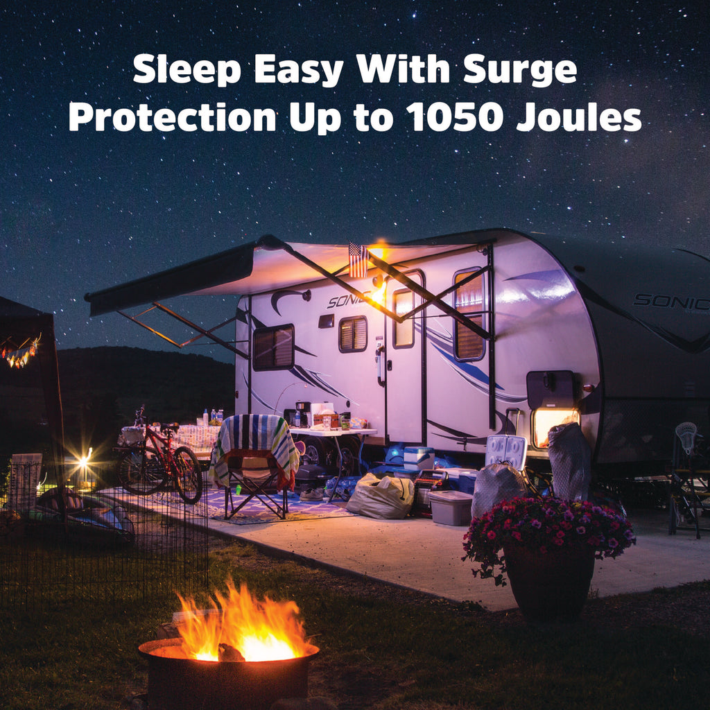 Protect your RV or EV and onboard appliances from devastating power surges and spikes up to 22,500A or 1050 Joules with the Energizer 30A Plug & Play Surge Protector.