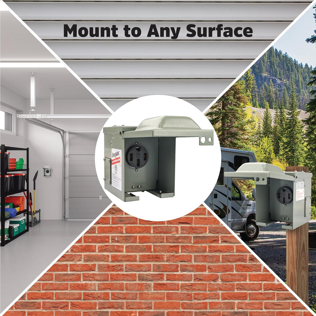 - Receptacle has a hole for a padlock to protect your power outlet.