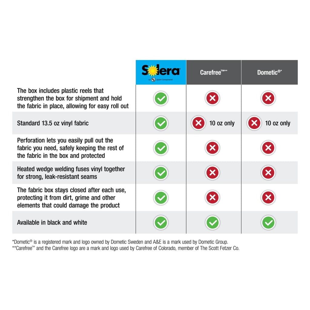 - UNIVERSAL FIT — The best part about Solera replacement fabric is that it's totally compatible with Solera, Dometic and Carefree slide topper and slide-out rooms