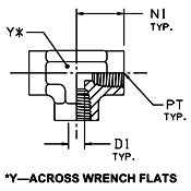 PT Port Thread NPFT: 1/2 & 14 | D1 Drill: 0.688 | N1: 1.23 | Y: 1-1/16