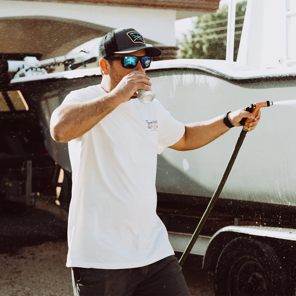 Your all day-every day, on the boat, at the beach, at the bar tee that supports your desire to set sail for the horizon, spun with a dose of darkness from our comrades at Dark Seas. The Grundéns X Dark Seas collab ventures past the shoreline to create timeless designs inspired by the human spirit’s natural draw to water. Forged by a kinship of the wayward kind, Grundéns X Dark Seas products dive into the depths of mixing seafaring traditions with a wave of disruptiveness, encouraging a new generation of voyagers to explore their own path. Where the compass takes you from here is up to you.