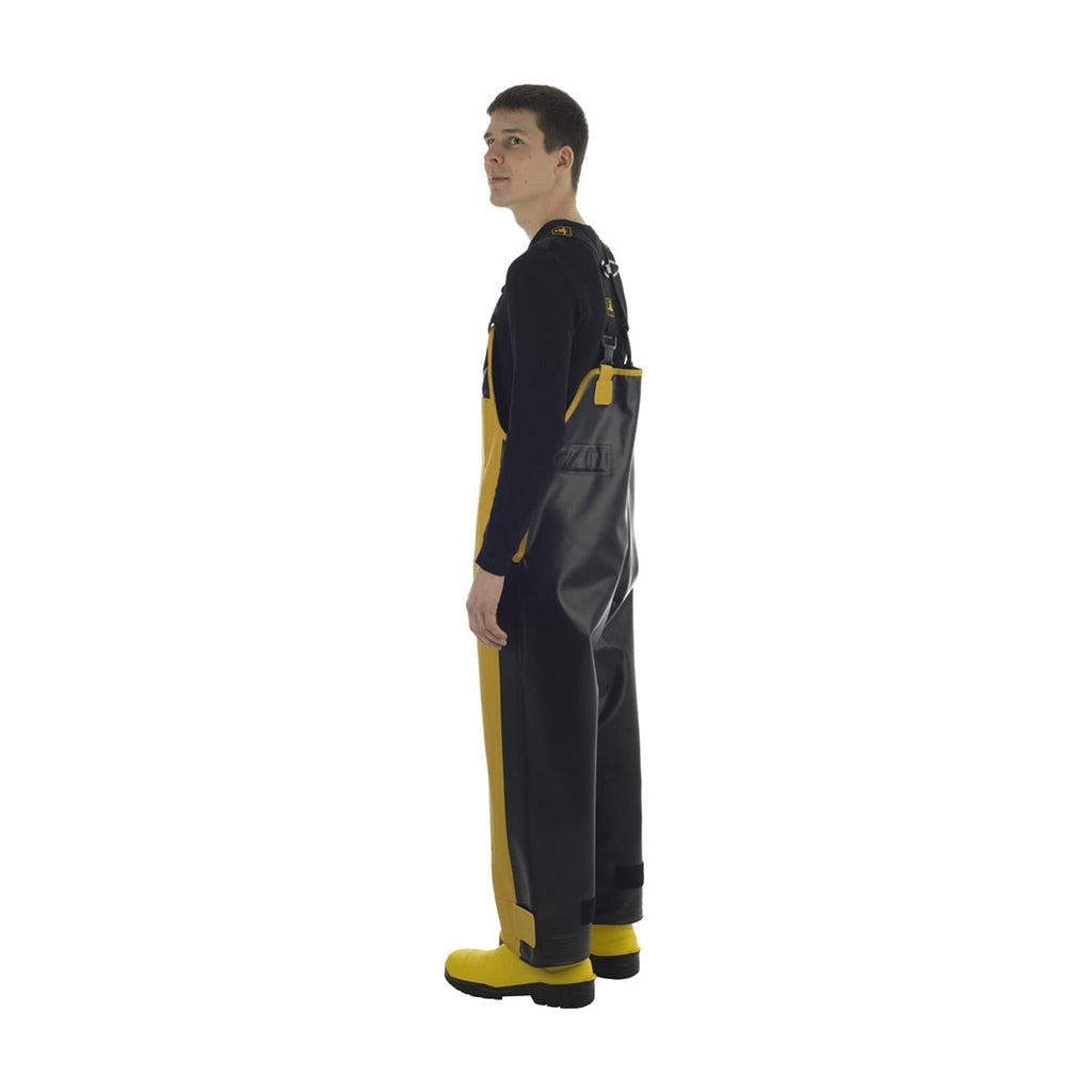 High bib trousers with ample space in front and at back. Made of Nylpeche fabric on the front for intensive uses.
