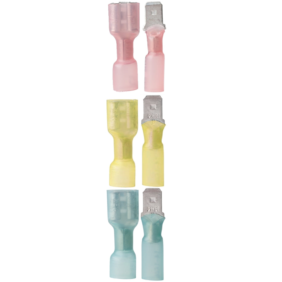 Ancor heat shrink connectors offer heat activated adhesive built into the sleeve of the heat shrink tubing. When heated, these connectors form a water tight seal and the ultimate vibration and strain relief.