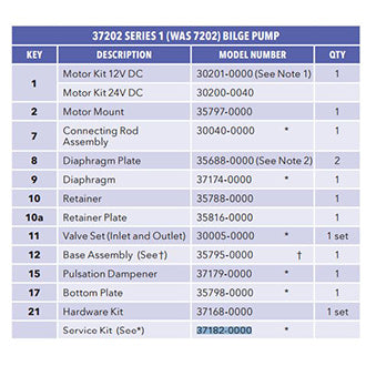 Jabsco, Pump Replacement Parts, Service Kit, 37182-0000, F/37202 Series 1 Bilge Pump