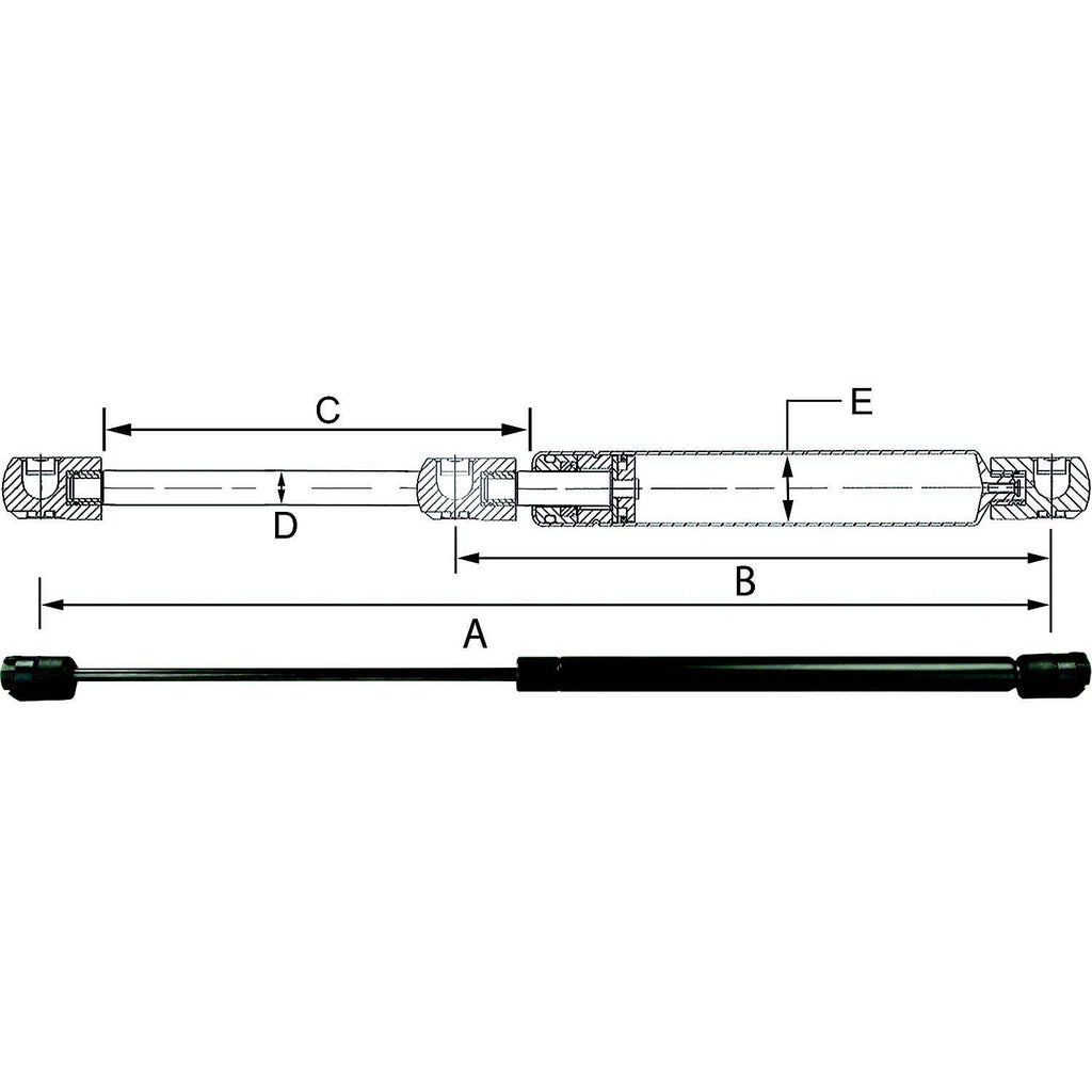Combines all the proven reliability you've come to expect from an SPD Gas Spring along with the added feature of a nitride shaft. The GSNI Gas Spring incorporates a strong annealed steel rod with a Nitride coating for added corrosion resistance, especially when used with the all composite PS130 end fitting. This gas spring is an ideal choice where exceptional quality, combined with an overall black appearance, are important for your application. GAS SPRING FIT AND SELECTIONIf you already have a gas spring installed, selecting a replacement can be as simple as A-B-C. A. Measure the extended length from center mounting hole to center mounting hole (see “A” in diagram). B. Measure the amount of piston that is exposed while extended. This is called the stroke of the gas spring. (see “C” in diagram). C. Find the extended length that is the closest to your current unit. Then use either the stroke measurement or subtract the stroke from extended and select the compressed sizes that are closest to your current spring.(The measurements do not have to be exact but the closer you can match the original the easier it will be to install.) SELECTING THE FORCE - If your current spring has a stamped label, the force should be listed within that number. Usually, the last two digits or followed by the letter N which is Newtons. One pound equals 4.4482 Newtons. This is the pounds of force being exerted to open or hold open the door or platform. It does not equal the weight of the item being lifted. Trial and error is not the best way to find that number.GSNI-6642 is used on truck caps.