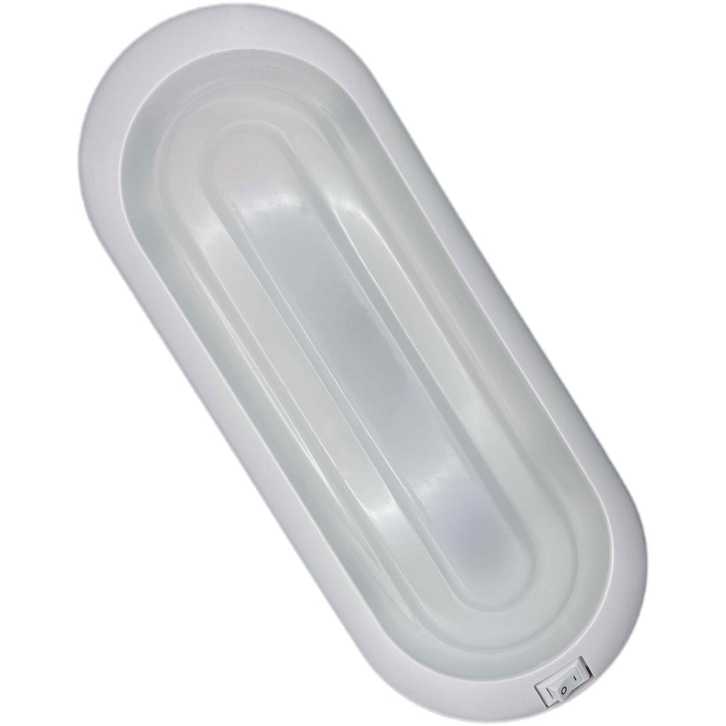LED 12V slim pancake double light. Dome Double Slim Line. 3.75" x 9.25" w/switch, 2 Wire, .28 Amp, White, 1pk