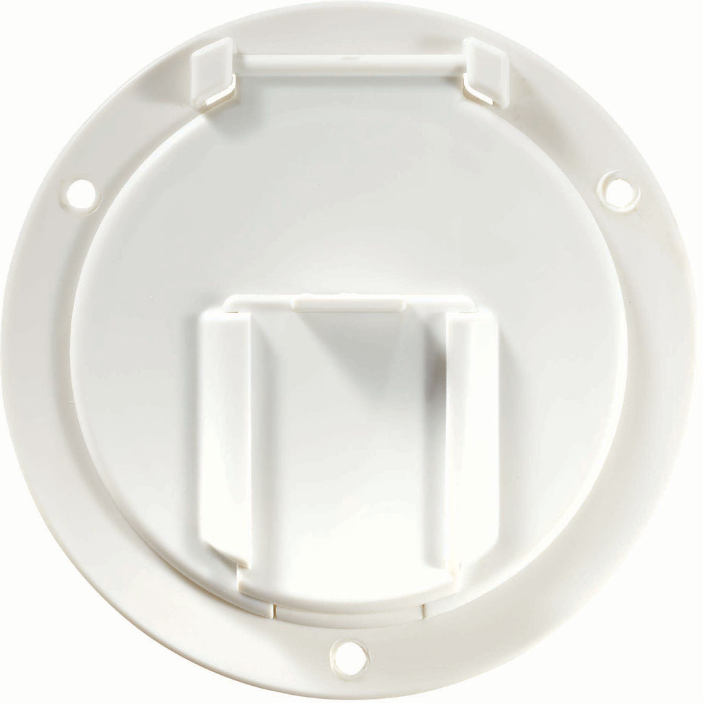 Low profile cable hatch 4.6" x 2.6" fits up to 50 Amp. Replaceable lids — snap on/snap off. Easy instsallation — Same hole location and footprint as original equipment.