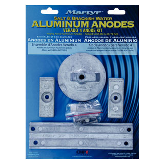 Martyr, Mercury Verado Anode Kits, Aluminum, 4 Cylinder. Mercury Verado anode kits. Comes complete with anodes; hardware and install instructions.