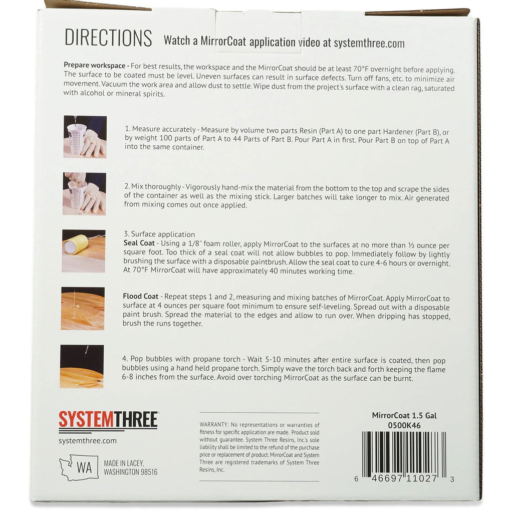 Favored by professionals and DIYers alike, MirrorCoat is our self-leveling bar and tabletop epoxy coating with fans around the world. Featuring 100% solids and a crystal clear finish, MirrorCoat applies easily and gives the appearance of multiple coats of varnish.