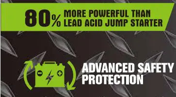 - 12V Lithium Battery – Holds a charge 10x Longer than a standard Lead Acid Jump Starter