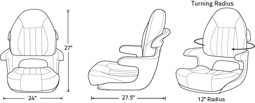 Tempress has teamed up with leading US Spinal Surgeons and Ergonomic Experts to create the break-thru patented ProBax Elite Seat with Arms. ProBax is the only seat clinically proven to provide optimal long-term back and upper body support. This seat comes equipped with a patented base and back dual core foam support system only available thru Tempress. This Boat Captain's Seat is also water resistant and durable for prolonged use. ProBax is sewn with UV and abrasion-resistant polyester thread and covered in 30-oz. marine-grade vinyl to stand up to all the elements. Eight embedded mounting inserts will fit most slider systems any 5-1/4" mounting system when paired with the Elite Mounting Plate. Take control of your boating and fishing experience, take control of your body and upgrade to the ProBax Boat Captain's Seat by Tempress. Made in USA.