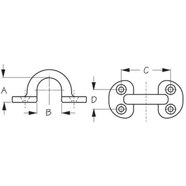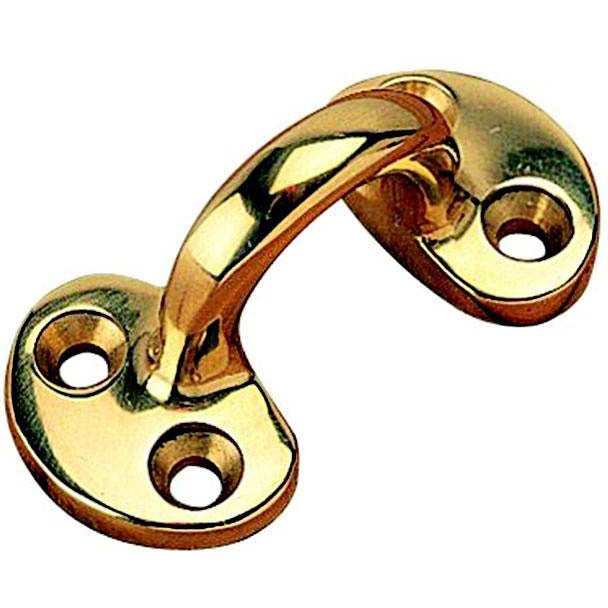 Polished cast brass pad eye can be used for a variety of applications both decorative and functional. Great for block attachment, controlling lead lines, or creating tie down points. Installs with two #8 FH fasteners (not included).