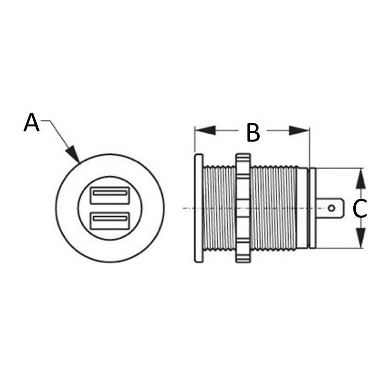 This USB power socket charges two devices simultaneously. Input 12V–24V. Total output DC 5V/4.8A with the load being split between the two sides as needed. Enough power to charge iPhones, iPads and most other devices. Blue LED illumination. Protective dust cap extends the life of the charger. Fits Sea-Dog® Line standard 1-1/8” Power Socket Shell 426100. IP65 rating.Manufacturer: Sea-Dog