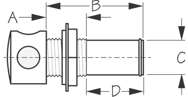 A: 3/4" | B: 1-3/4" | C: 5/8" Hose | D: 1"