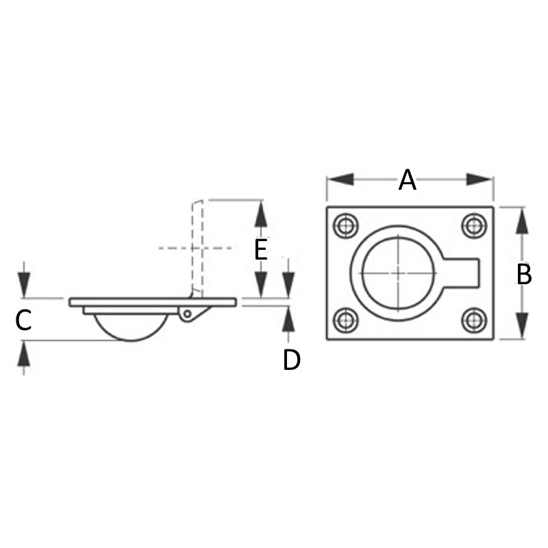 Finish: Brass | A: 2-1/2" | B: 2" | C: 3/16" | D: 1/8" | E: 1-1/2" | Fastener: 8 FH