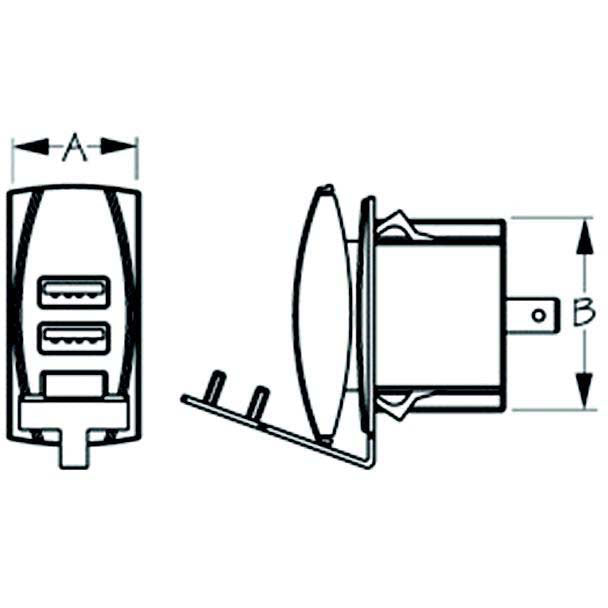 Dual USB Rocker Switch Style Power Socket charges two devices simultaneously. Fits into any 13/16” x 1-7/16” rocker switch hole. The total output 4.8A load is split 2.4A per side as needed. Enough power to charge phones, pads, and tablets quickly and efficiently. Protective dust cap extends the life of the charger. Constructed of injection molded nylon. Output DC 5V/4.8A. Input 12-24VDC. Blue LED illumination. IP65 rating.