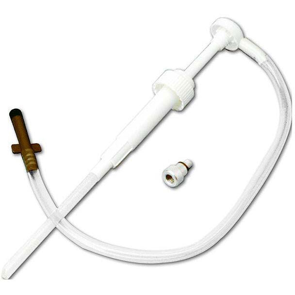 Nylon/aluminum. Standard Pump fits quart oil bottles. Flexible hose gets to hard to reach locations. Threaded (3/8"-16) fitting fits Mercruiser, OMC, Evinrude, Johnson, Honda (70hp & up), Volvo, Force, Mercury (US origin models) and Gamefisher lower units. Includes Yamaha adapter (8mm-1.25) fitting for Mercury (Japanese origin models), Yamaha, Nissan, Tohatsu, Honda.