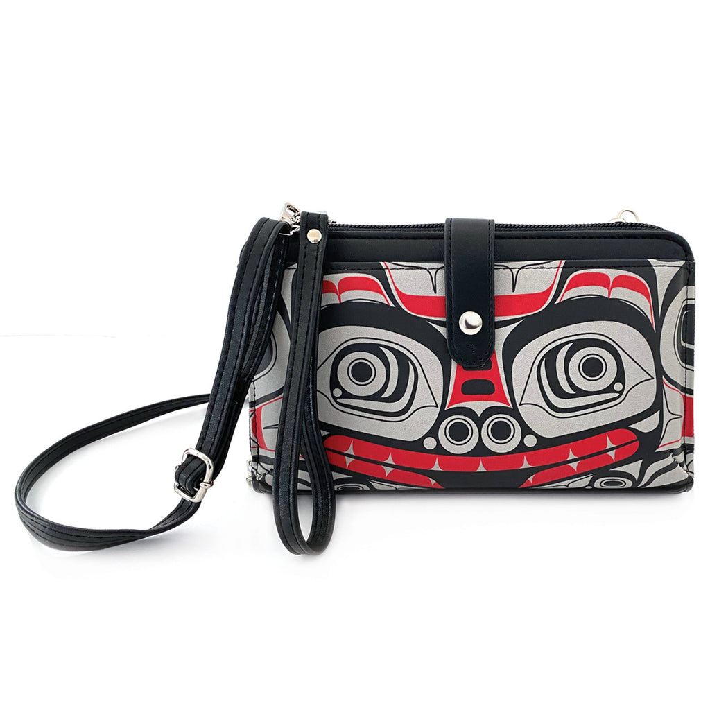Introducing the Native Northwest Smartphone Crossbody Bag, your all-in-one accessory for modern living. Crafted from 100% Vegan leather, this versatile 7.9" x 1" x 4.3" bag accommodates smartphones, cards, cash, and keys with ease. It's stylish and functional with a main zipper closure, a front slit pocket, an interior housing 8 card slots, two billfolds, and a zipper pocket. Use it as a crossbody bag, wristlet, wallet, or clutch - the choice is yours.