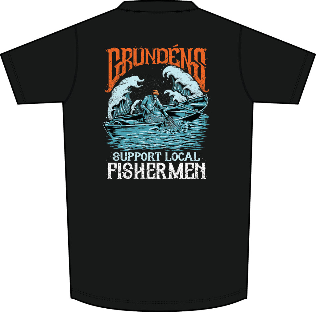 Show your support for the dedicated and hardworking fisher folk providing us with the bounty of the sea--and look great doing it in this quality Tee with the beautiful fishing scene on the back.