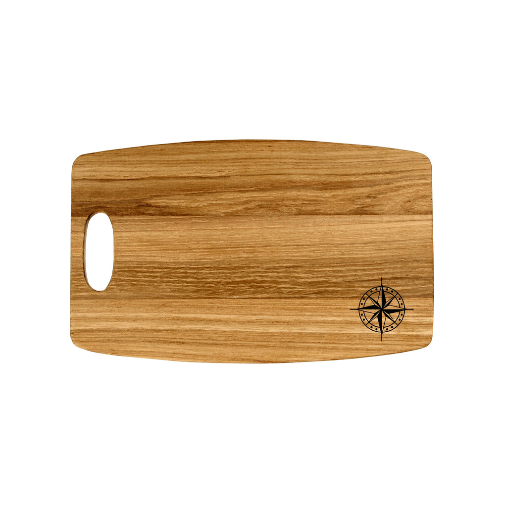 Teak Bread Board w/ Compass Design - 8" x 14"