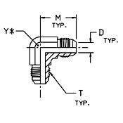 Tube O.D.: 1/2 | T UN/UNF-2A: 3/4-16 | D: 0.391 | M: 1.25 | Y: 3/4