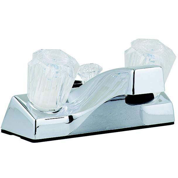 Utopia Lavatory Shower Faucet, Chrome w/Clear Handles. Utopia® 4" lavatory shower faucet is made in the USA with a 5 year warranty.